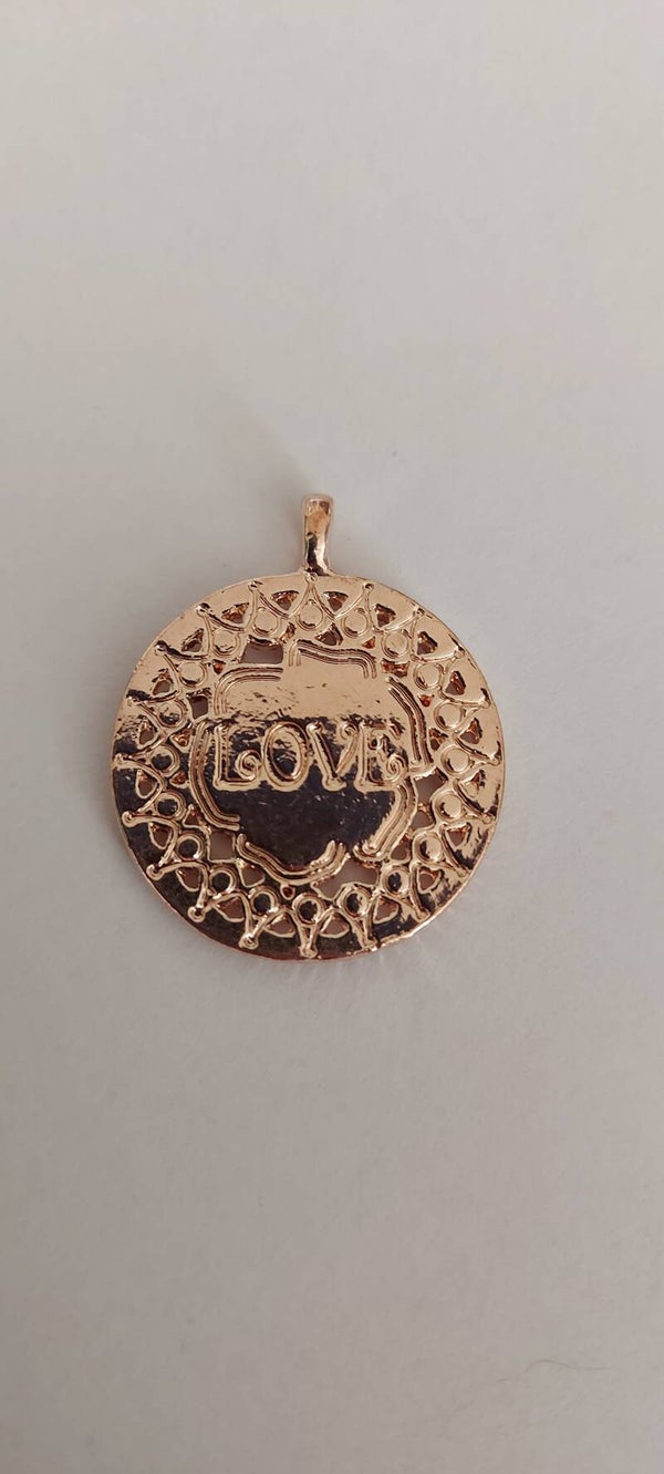Kopergoud kleurige amulet met op de voorkant een Roos,