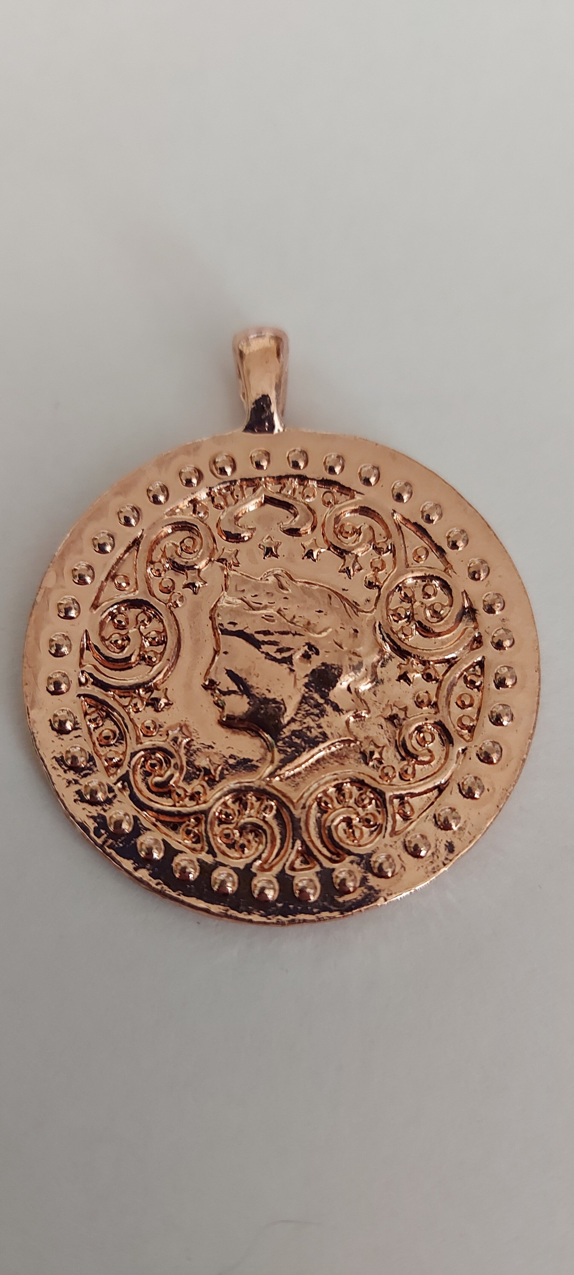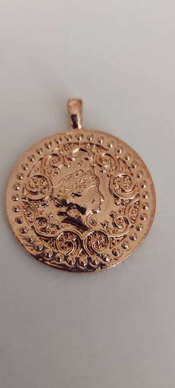 KoperGoud kleurige amulet met romijnse afbeelding.
